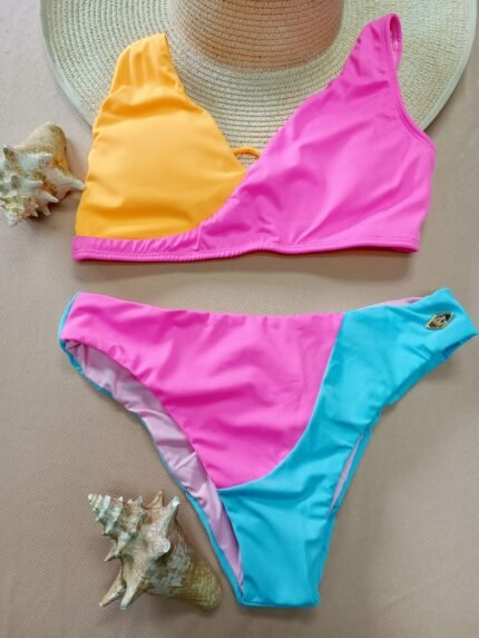 Bikini/talle alto panty cerrada y top tipo trapecio (Color 2)