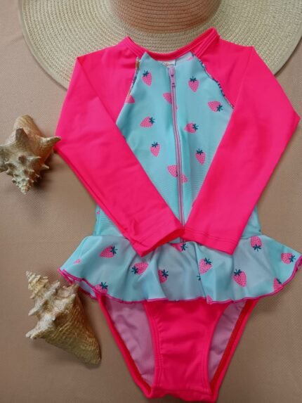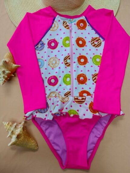 Entero infantil tipo buzo manga larga fucsia estampado