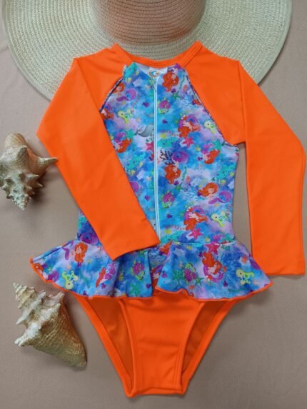 Entero infantil tipo buzo manga larga anaranjado estampado